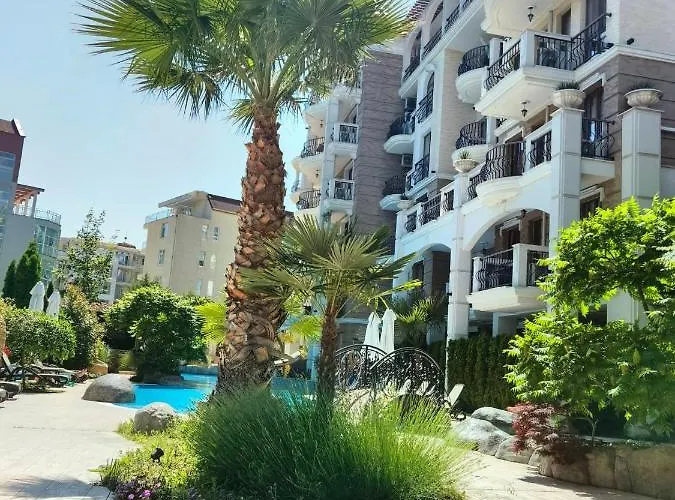 Harmony Suitеs Apartment位于阳光海滩,距离布尔加斯机场有30公里,全场有无限网络. 公寓享有私人泳池美景并提供室外游泳池,水疗 和花园.